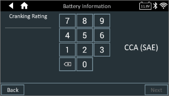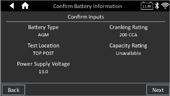 4. Confirm your battery information inputs, and select Next to proceed. If you need to revise any selections, press back and return to the screen needing the change.