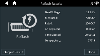 6. The Reflash Results screen is displayed. If you would like to print or email the results, select Output Result. Otherwise, press Done to return to the Home screen.